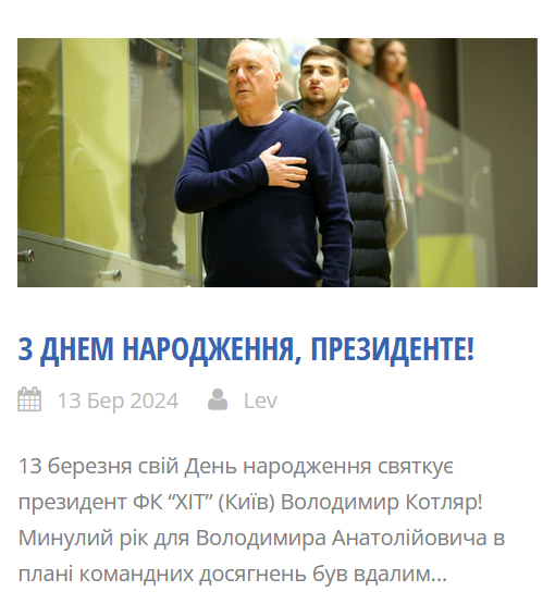 13 березня Володимир Котляр святкував свій день народження, поздоровлення йому були оприлюднені на сайті ФК «Хіт».