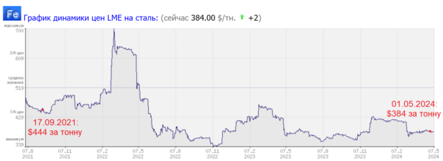 При цьому зараз ціна сталі на Лондонській біржі кольорових металів «LME» становить $384 за тонну. Це на 14% дешевше від вересня 2021 року, коли вона становила $444 за тонну.