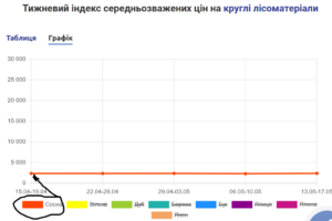 Біржова ціна сосни, яку вільно реалізовують державні лісгоспи, на «Українській енергетичній біржі» зараз становить близько 2 400 грн за кубометр.