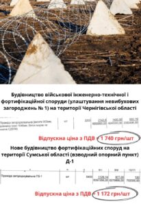 Також чернігівці прописали найдорожчу доставку пірамідок від виробника до місця встановлення – на рівні 3 грн за один кілометр. Тоді як Волинська ОДА для взводно-опорного пункту «ХХХ» доставку «зубів дракона» врахувала приблизно по 2 грн/км. А Східне управління замовника робіт Міністерства оборони для об’єкта на Сумщині – по 1,1 грн/км.
