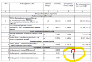 У тендеру не було очікуваної вартості. Учасники подавали свої пропозиції, виходячи з власної оцінки того, скільки має коштувати виконання робіт по 21 позиції разом із проектуванням (наприклад, заміна вікон з алюмінієвого профілю, заміна пошкодженого лінолеуму, тощо). Але вже очевидно, що не всі учасники правильно заповнили свою пропозицію. Наприклад, фірма «Глассо» вказала вартість лише п’яти перших позицій, відтак її пропозиція й коштує 42 млн грн – втричі дешевше від наступної за ціною фірми.