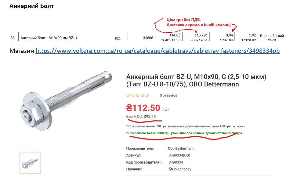 Приблизно така сама маржа зашита і в анкерних болтах, на які передбачено понад 3,6 млн грн.