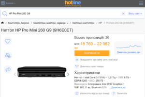 За даними сервісу порівняння цін «Hotline», зараз в інтернет-магазинах такий неттоп HP Pro Mini 260 G9 (9H6E0ET) із клавіатурою та мишкою, але без операційної системи продається по 18 760-22 952 грн, а такий самий монітор HP S3 Pro 324pf (9U5J5UT) – по 5 882-7 244 грн.