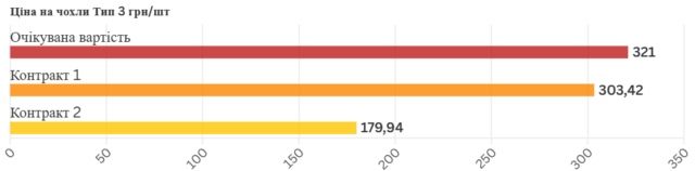 ДОТ визначав очікувану вартість на основі відповідей чотирьох підприємств і даних зі статистики «Прозорро». Для чохлів Типу 1 очікувану ціну встановили 356 грн/шт, а для Типу 3 — 321 грн/шт.