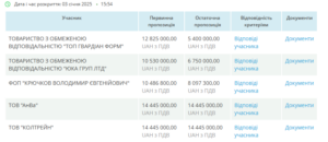 Перше підприємство виключили через відсутність гарантійного забезпечення, друге – через відсутність довідок, зокрема про несудимість керівника та податковий борг.