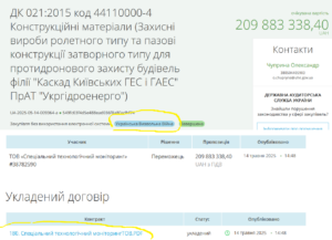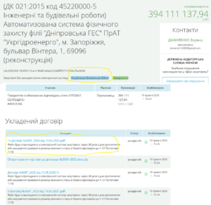 З урахуванням цього підряду «Укргідроенерго» протягом 2022-2025 років замовило облаштування протидронового захисту та відновлення об’єктів різних ГЕС після ракетних ударів на загальну суму 22,23 млрд грн. При цьому в більшості випадків договори укладалися без торгів, а підсумкові відомості ресурсів не оприлюднювалися.