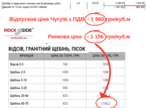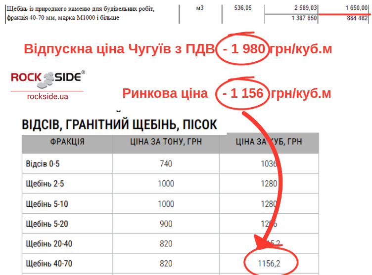 Щебінь фракції 40-70 мм вписали по 1 980 грн/куб. м. Харківські «Бетон плюс» та «Еталон» продають такий по 1 029 грн/куб. м, «Щебінь Харків» ‒ по 900 грн/куб. м, а «Роксайд» ‒ по 1 156 грн/куб. м, тобто на 40-50% дешевше.