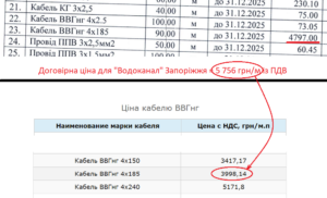 Запорізький водоканал замовив кабелі та проводи у 1,5 раза дорожче від ринкових цін