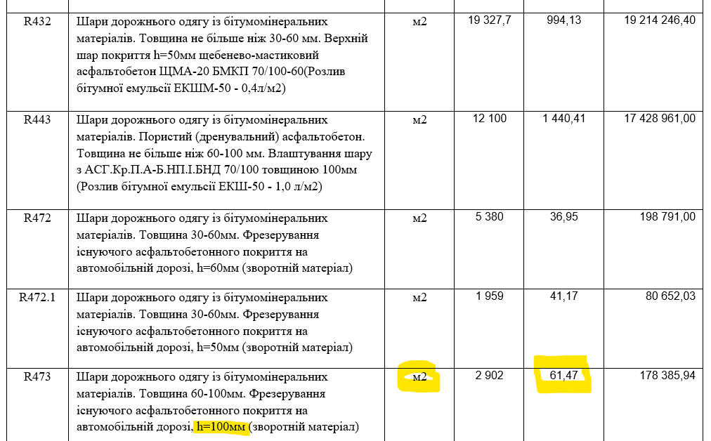 Жодні конкуренти на тендер не подавались. Ціну асфальтового шару в договірній ціні зафіксували на рівні 6610 грн за тону. При зарезервували 67 млн грн на покриття ризиків та 44 млн грн на можливі додаткові витрати через інфляцію.