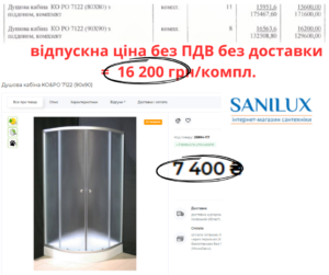 Також вдвічі завищені ціни й на душові кабіни. Як бачимо, найменування кабіни в кошторисі прописали повністю. Такі кабіни легко знайти в продажу. Наприклад, кабіна розмірами 90х90 буде коштувати в магазині 7400 грн/шт, а не 16 000 грн/шт.