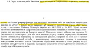 Однак договором між ОДА і консорціумом «Білдінг груп» передбачена можливість 20% попередньої оплати на майбутні роботи (див скрін). Тож не можна виключати, що обладміністрація заплатить 200 млн грн, а роботи через війну так і не почнуться.