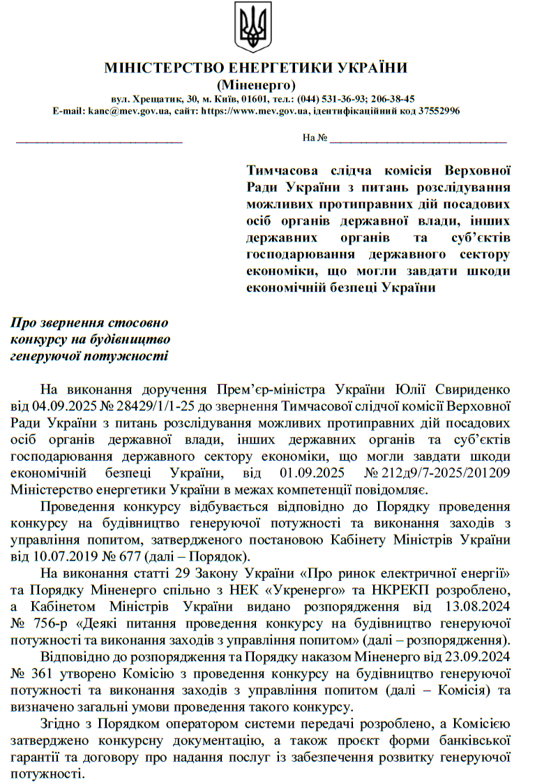 Про це свідчить відповідь Міненерго на запит Тимчасової слідчої комісії Верховної Ради України з питань розслідування можливих протиправних дій посадових осіб органів державної влади, інших державних органів та суб’єктів господарювання державного сектору економіки, що могли завдати шкоди економічній безпеці України. Копія документу є в розпорядженні «Наших грошей».