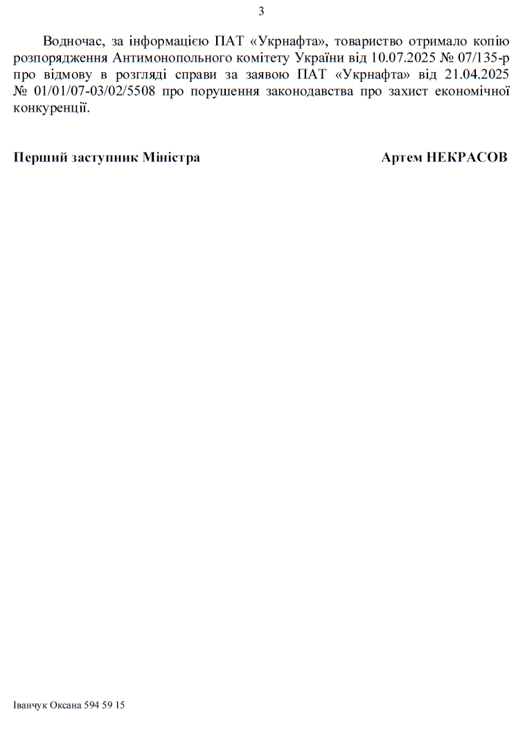 В АМКУ більше двох місяців вирішували що робити і 10 липня повідомили «Укрнафту» про відмову в розгляді справи. І це логічно, оскільки конкурс проходив не по закону про закупівлі. Хоча що там думати стільки часу – знають тільки високомудрі прокурори на чолі комітету.