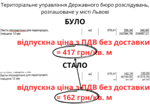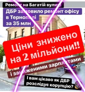 «Наші гроші» 13 жовтня повідомили про завищені ціни на матеріальні ресурси у реконструкції будівлі ДБР у Тернополі. Додаткову угоду про зменшення ціни договору оприлюднили ввечері 14 жовтня, а уклали її 10 жовтня. Договірна ціна є твердою.